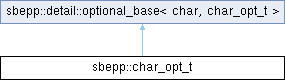 Public Types inherited from sbepp::detail::optional_base< char, char_opt_t > | |
