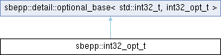 Public Member Functions inherited from sbepp::detail::optional_base< std::int32_t, int32_opt_t > | |